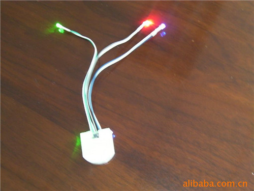 原理 无论在何种鞋内安装LED光源必须要有电力支持,一般以纽扣电池为主。以单颗或多颗LED以适当的距离置于透明鞋底内侧或鞋面外侧,每步踏下时振动开关触发LED环绕鞋底闪动发光,可以用单色LED或彩色LED夹杂显出瑰丽的色彩。对于制鞋厂来说,只要设计好鞋样安装就可以了。